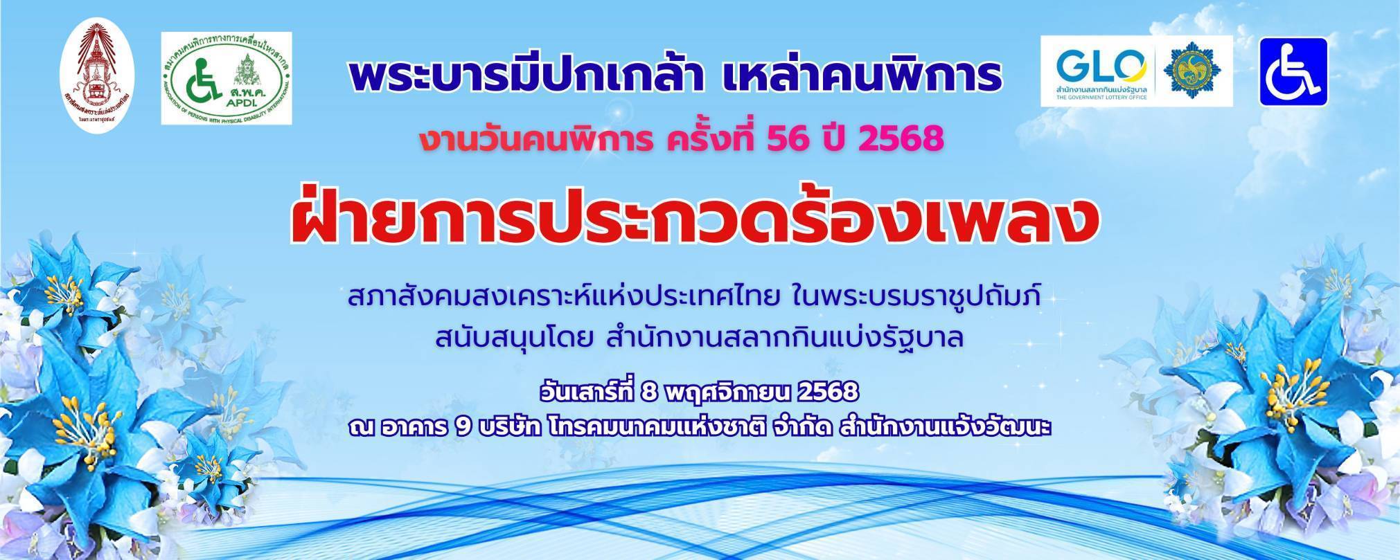 ภายใต้แนวคิด “พระบารมีปกเกล้า เหล่าคนพิการ”ร่วมส่งกำลังใจให้คนพิการ โชว์ศักยภาพบนเวทีการประกวดร้องเพลงสภาสังคมสงเคราะห์แห่งประเทศไทย ในพระบรมราชูปถัมภ์ ขอเชิญชวนประชาชนทุกภาคส่วน ร่วมงาน “วันคนพิการ ครั้งที่ 56 ประจำปี 2568”