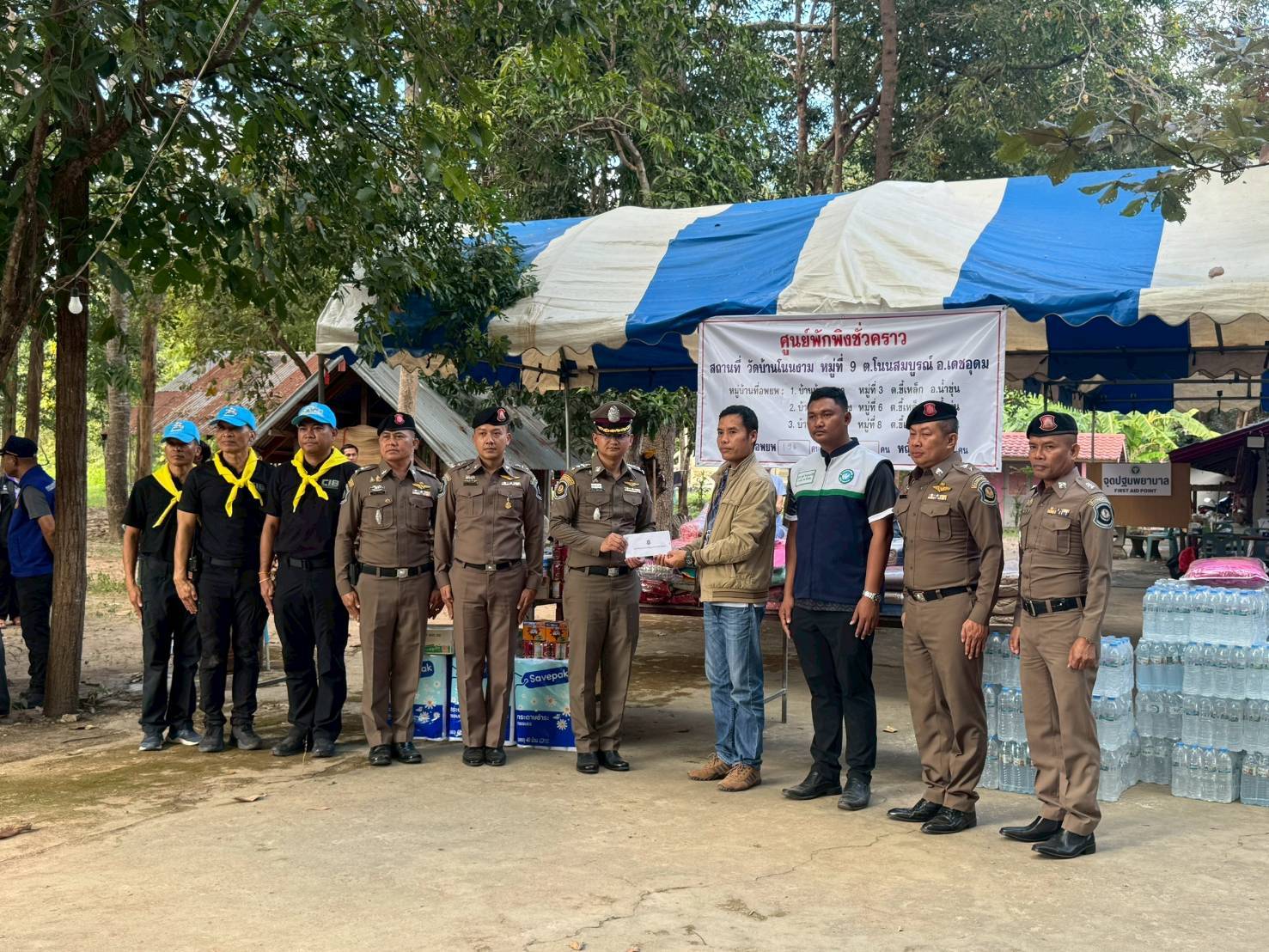 วันที่ 11 ธันวาคม 2568 พล.ต.ท.ณัฐศักดิ์ เชาวนาศัย ผบช.ก. พล.ต.ต.พรศักดิ์ เลารุจิราลัย ผบก.ทล. มอบหมายให้ ว่าที่ พ.ต.อ.วิษณุ คำโนนม่วง ผกก.6 บก.ทล. พ.ต.ท.ณัฐติรุจน์ วัฒนะฉัตรรัตน์ สวญ.ส.ทล.4 กก.6 บก.ทล. พร้อมข้าราชการ ในสังกัด กก.6 บก.ทล ร่วมกิจกรรมจิตอาสาในช่วงสถานการณ์สงครามชายแดนไทย-กัมพูชา โดยมอบของอุปโภคบริโภค และเงินสนับสนุน แก่ประชาชนผู้อพยพ ณ วัดบ้านโนนงาม ต.โนนสมบูรณ์ อ.เดชอุดม จว.อุบลราชธานี ซึ่งมีครอบครัวผู้อพยพกว่า 200 ครัวเรือน กิจกรรมดังกล่าวประกอบด้วย การมอบสิ่งของแก่ผู้ป่วยติดเตียง ผู้สูงอายุ มอบสิ่งของแก่ผู้นำชุมชนที่ดูแลศูนย์อพยพเพื่อจัดสรรต่อไป โดยเฉพาะผ่าห่ม ผ้าอนามัย ที่ขาดแคลนเป็นที่ต้องการ โดยของอุปโภคบริโภค และเงินสนับสนุนได้มาจากผู้มีจิตศรัทธาที่ร่วมบริจาคส่วต่อมา ให้กำลังใจ คนไทยไม่ทิ้งกัน นอกจากนี้ยังมีกิจกรรมแจกไอศกรีม ขนมให้เด็ก และบรรยายให้ความรู้กับเด็กๆ ให้เด็กรู้จักตำรวจทางหลวง และได้ทดลองมานั่งรถทางหลวง สร้างบรรยากาศผ่อนคลายจากความตึงเครียดในสถานการณ์ เป็นรอยยิ้มที่ส่งจากตำรวจส่งต่อไปยังผู้อพยพ ให้มีกำลังใจร่วมต่อสู่ไปด้วยกัน ทั้งนี้นโยบายดังกล่าวเป็นไปตาม ข้อสั่งการ ผบ.ตร.ที่กำชับให้ตำรวจทุกหน่วย เตรียมพร้อมกำลัง 100 % พร้อมร่วมยุทธการสนับสนุนกองทัพในภารกิจรักษาอธิปไตยทันทีที่มีการร้องขอ ขณะเดียวกันให้ดำเนินการตามแผนพิทักษ์พื้นที่ส่วนหลังดูแลความปลอดภัยในชีวิตและทรัพย์สิน เข้าช่วยเหลือประชาชนทุกมิติ พร้อมทั้งอำนวยการการจราจรในพื้นที่ดังกล่าวเพื่อให้การดำเนินยุทธการ และการสัญจรของพี่น้องประชาชนเป็นไปโดยสะดวก