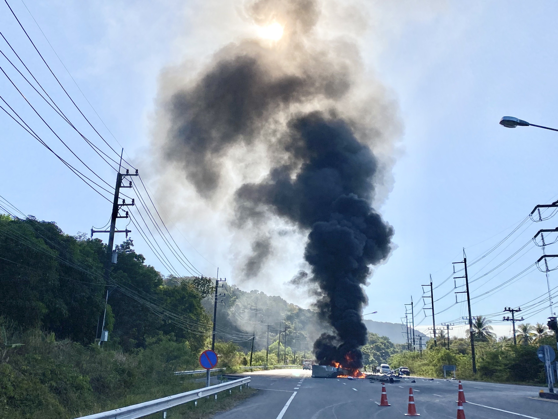 อ.คลองใหญ่ จ.ตราด หนุ่มวัย 36 หลับในกระบะชนยูเทิร์นก่อนเกิดไฟลุกท่วมทั้งคัน เสียงระเบิดดังสนั่นคนขับเจ็บ