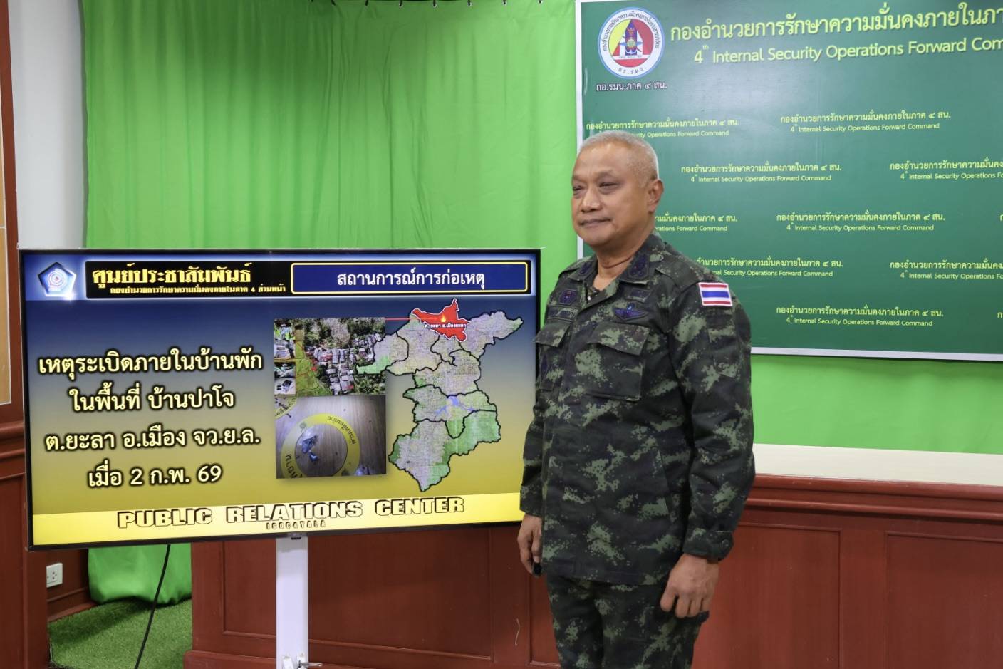 อับดุลหาดี/ยะลา/5 มี.ค. 69โฆษก กอ.รมน.ภาค 4 สน. แถลงข่าวความคืบทางคดี เหตุระเบิดภายในบ้านพัก ในพื้นที่ บ้านปาโจ ตำบลยะลา อำเภอเมือง จังหวัดยะลา เมื่อวันที่ 2 กุมภาพันธ์ 2569พันเอก ยุทธนาม เพชรม่วง โฆษกกองอำนวยการรักษาความมั่นคงภายในภาค 4 ส่วนหน้า แถลงความคืบหน้าเหตุระเบิดภายในบ้านพัก ในพื้นที่ บ้านปาโจ ตำบลยะลา อำเภอเมือง จังหวัดยะลา วันนี้ (5 มีนาคม 2569) พันเอก ยุทธนาม เพชรม่วง โฆษกกองอำนวยการรักษาความมั่นคงภายในภาค 4 ส่วนหน้า เปิดเผยว่า จากสถานการณ์เหตุระเบิดภายในบ้านพัก ในพื้นที่ บ้านปาโจ ตำบลยะลา อำเภอเมือง จังหวัดยะลา เมื่อวันที่ 2 กุมภาพันธ์ 2569 นั้นภายหลังเกิดเหตุการณ์ตั้งแต่วันที่ 2 กุมภาพันธ์ 2569 ที่ผ่านมา เป็นเหตุให้ นายตัซรี (สงวนนามสกุล) ผู้ก่อเหตุรุนแรงเสียชีวิต 1 ราย และบาดเจ็บจำนวนหนึ่ง ซึ่งต่อมาเจ้าหน้าที่ฝ่ายความมั่นคงเข้าตรวจสอบพื้นที่คาดว่ามีผู้ร่วมก่อเหตุเบื้องต้นอย่างน้อย 6 ราย จนนำไปสู่การควบคุมตัวผู้ต้องสงสัย จำนวน 3 ครั้ง ในวันที่ 3, 5 และ 12 กุมภาพันธ์ 2569 ตามลำดับ สามารถควบคุมตัวผู้ต้องสงสัยจำนวน 5 ราย โดยมีรายละเอียด ดังนี้ วันที่ 3 กุมภาพันธ์ 2569 เจ้าหน้าที่สามารถควบคุมตัวผู้ต้องสงสัยได้ 2 ราย คือ นายต่วนฮาซัน และนายต่วนฮูเซ็น (สงวนนามสกุล) โดยผู้ต้องสงสัยทั้ง 2 รายให้การรับสารภาพต่อมาเมื่อวันที่ 5 กุมภาพันธ์ 2569 เจ้าหน้าที่สามารถควบคุมตัวผู้ต้องสงสัยได้ 1 ราย คือ นางสาว ต่วนมุมีน๊ะ (สงวนนามสกุล) เจ้าของบ้านที่เกิดเหตุ โดยผู้ต้องสงสัย ให้การรับสารภาพเช่นกัน และล่าสุด เมื่อวันที่ 12 กุมภาพันธ์ 2569 เจ้าหน้าที่สามารถควบคุมตัวผู้ต้องสงสัยได้อีก 2 ราย คือ นายต่วนตาโอ๊ะ และ นายต่วนฮัมดี (สงวนนามสกุล) ซึ่งผู้ต้องสงสัยทั้ง 2 ราย ให้การรับสารภาพเช่นเดียวกันจากผลการซักถาม ผู้ที่ถูกควบคุมตัว และจากวัตถุพยานในที่เกิดเหตุทำให้ทราบว่ายังมีบุคคลต้องสงสัยในเหตุการณ์อีกอย่างน้อย 1 ราย ปัจจุบันอยู่ในกระบวนการตรวจสอบพิสูจน์หลักฐานในที่เกิดเหตุเพิ่มเติม เพื่อนำไปสู่การติดตามตัวบุคคลต้องสงสัยดังกล่าวมาดำเนินการตามขั้นตอนของกฎหมาย หากมีรายละเอียดเพิ่มเติม จะแจ้งให้ทุกท่านทราบต่อไปสรุปในภาพรวม ปัจจุบันได้ควบคุมตัวผู้ต้องสงสัยตามหมายพระราชกำหนดการบริหารราชการในสถานการณ์ฉุกเฉิน พ.ศ. 2548 ณ ศูนย์พิทักษ์สันติ จำนวน 5 ราย เพื่อดำเนินการซักถามและขยายผลตามขั้นตอนกฎหมาย คือ 1. นายต่วนฮาซัน (สงวนนามสกุล) จับกุมเมื่อ 3 ก.พ. 69 2. นายต่วนฮูเซ็น (สงวนนามสกุล) จับกุมเมื่อ 3 ก.พ. 69 3. น.ส.ต่วนมุมีน๊ะ (สงวนนามสกุล) จับกุมเมื่อ 5 ก.พ. 69 4. นายต่วนตาโอ