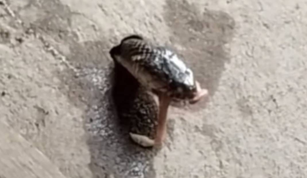 นครนายก – สาวใหญ่พบงูเห่าโผล่หัวจากรูถ่ายคลิปโยนหนังไก่ให้กินหลายวัน ต่อมาลอกคลาบไว้ให้เชื่อว่ามาให้โชคลาภ
